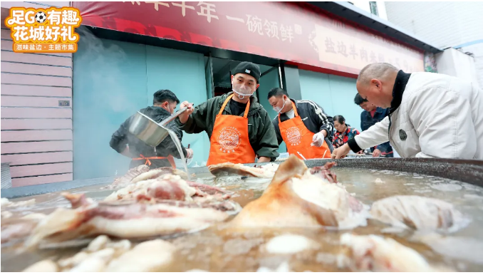 吃非遗—一在“足GO有趣·川超雄起”盐边潮流市集上,一碗碗热气腾腾的“盐边羊肉米线”汤鲜肉嫩、米线爽滑,是游子心中的乡愁,是攀枝花人美好一天的开始。“盐边油底肉”制作技艺传承人文小莉亲临市集,让这道承载古老智慧的传统美食在当代生活中飘香。