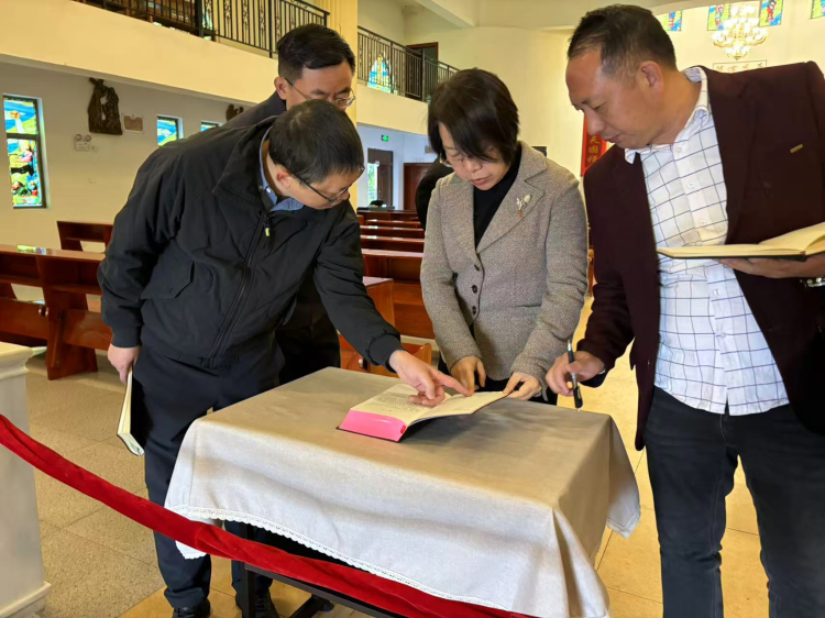 近日,市委统战部部长、市一级巡视员马晓凤带队前往西区平江天主教堂、西佛寺,调研宗教活动场所规范化管理、非法出版物整治等工作情况。市民族宗教委主任杨镇华、西区副区长吴伟陪同调研。