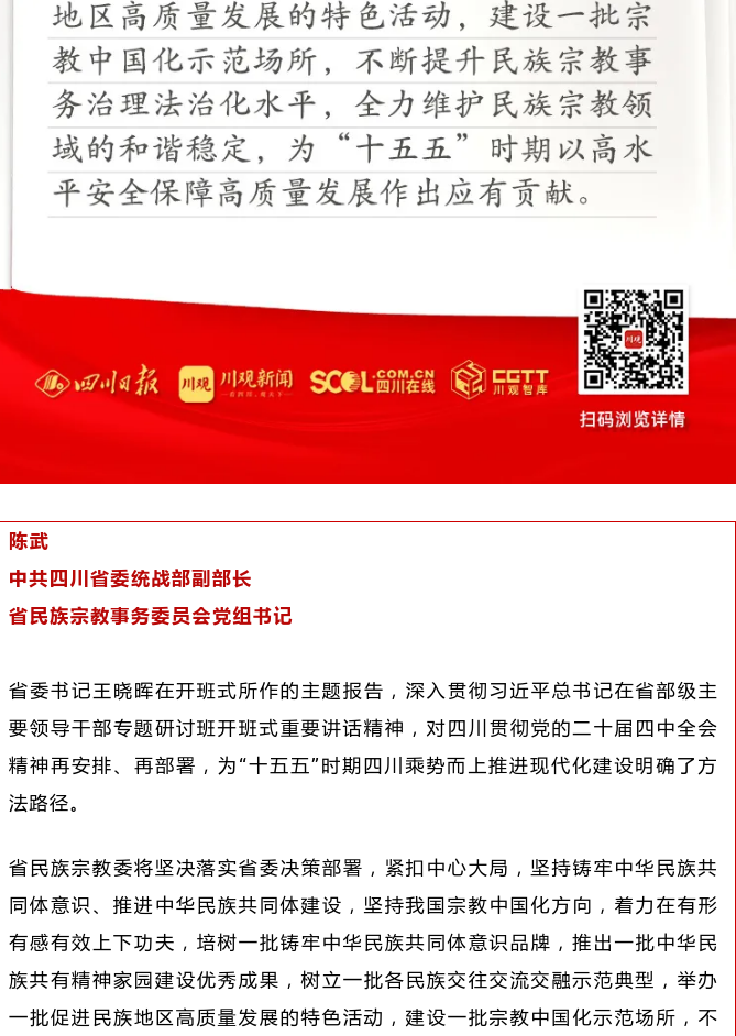 中共四川省委统战部副部长、省民族宗教事务委员会党组书记陈武:紧扣中心大局,推进中华民族共同体建设,坚持我国宗教中国化方向