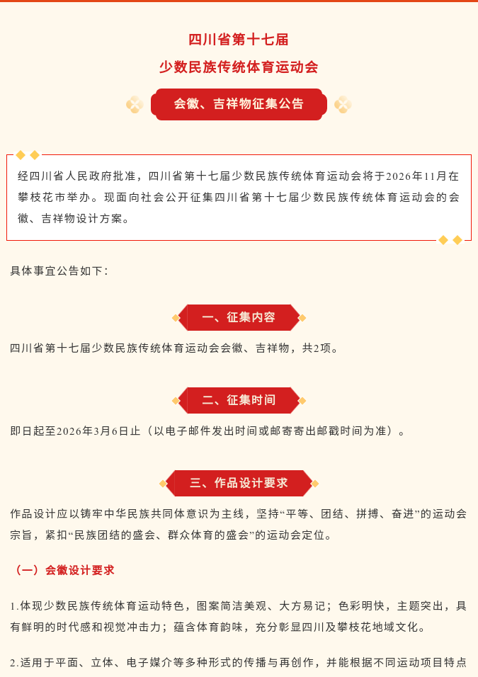 四川省第十七届少数民族传统体育运动会会徽、吉祥物征集公告