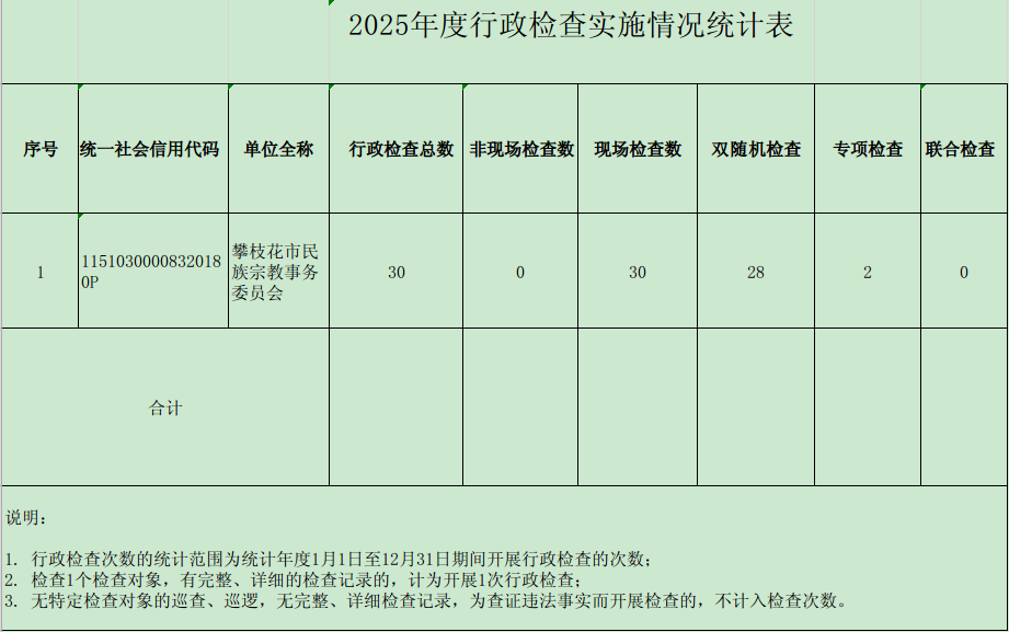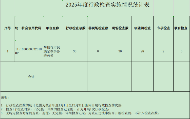 2025年度市民族宗教委行政检查实施情况统计表